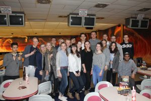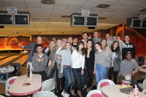 Vergangenes Jahr schaffte es unser Azubiteam den Azubiteamcup nach Bad Saarow zu holen. Wir sind stolz auf die Leistung und Umsetzung der fünf Vertreter, welche die Jury mit einem selbstgedrehten Film und auch in den spannenden Teamaktivitäten überzeugten. Uns war recht schnell klar, dass auch diese 500,00 € Preisgeld in den Teamzusammenhalt fließen muss. So nutzten wir die Gelegenheit, am 07.12.2017 zusammen mit allen Azubis ein kleines Bowling-Incentive durchzuführen. Dies bot sich direkt als Möglichkeit unsere neuen Azubis aus dem 1. Lehrjahr einzubinden und besser kennenzulernen. So verteilten wir uns also auf 5 kleine Teams und bowlten zwei Stunden voller Spaß und Enthusiasmus. Abschließend saßen wir noch ein Stündchen zusammen, werteten unsere Bahnen aus und ließen den Abend mit einem gemeinsamen Abendessen ausklingen.